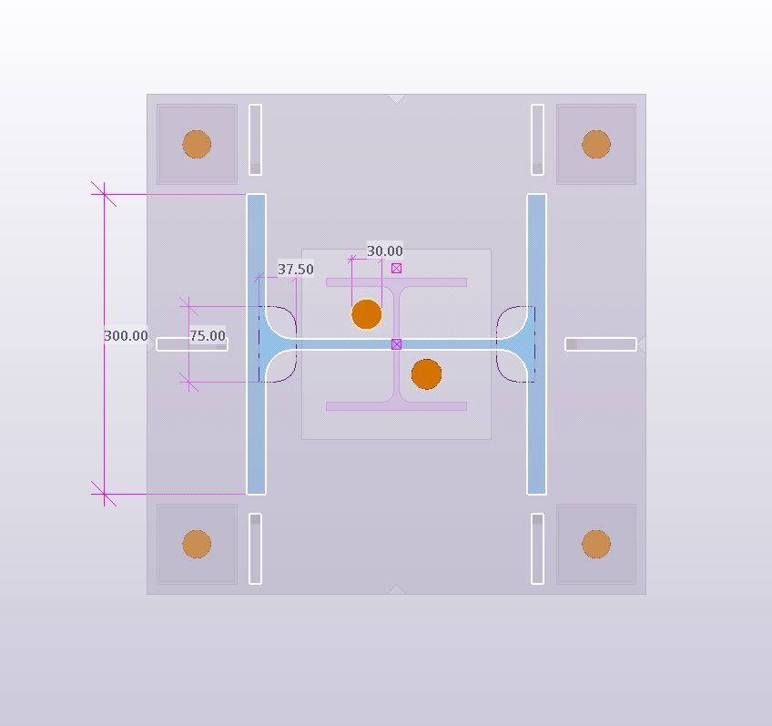 Piastra base con shear lug applicata ad un profilo da 300 riportante sia i fori per lo scolo dello zinco che quelli per la colata della malta.