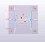 Piastra base con shear lug applicata ad un profilo da 300 riportante sia i fori per lo scolo dello zinco che quelli per la colata della malta. Utilizzare il seguente modello come esempio per l'esecuzione delle forature, opportunamente ridimensionate sulla base del proprio profilo.
